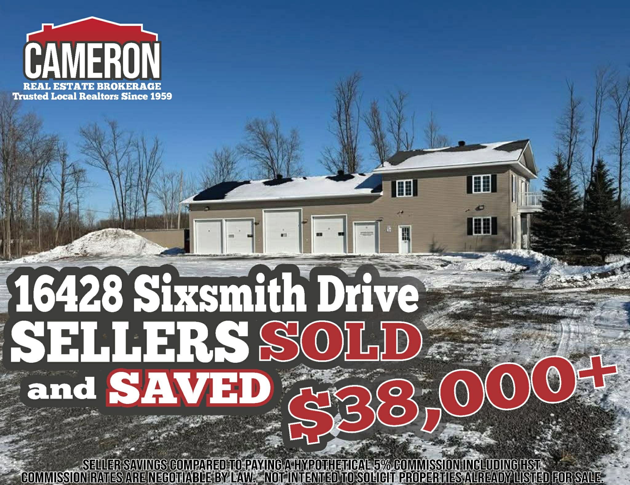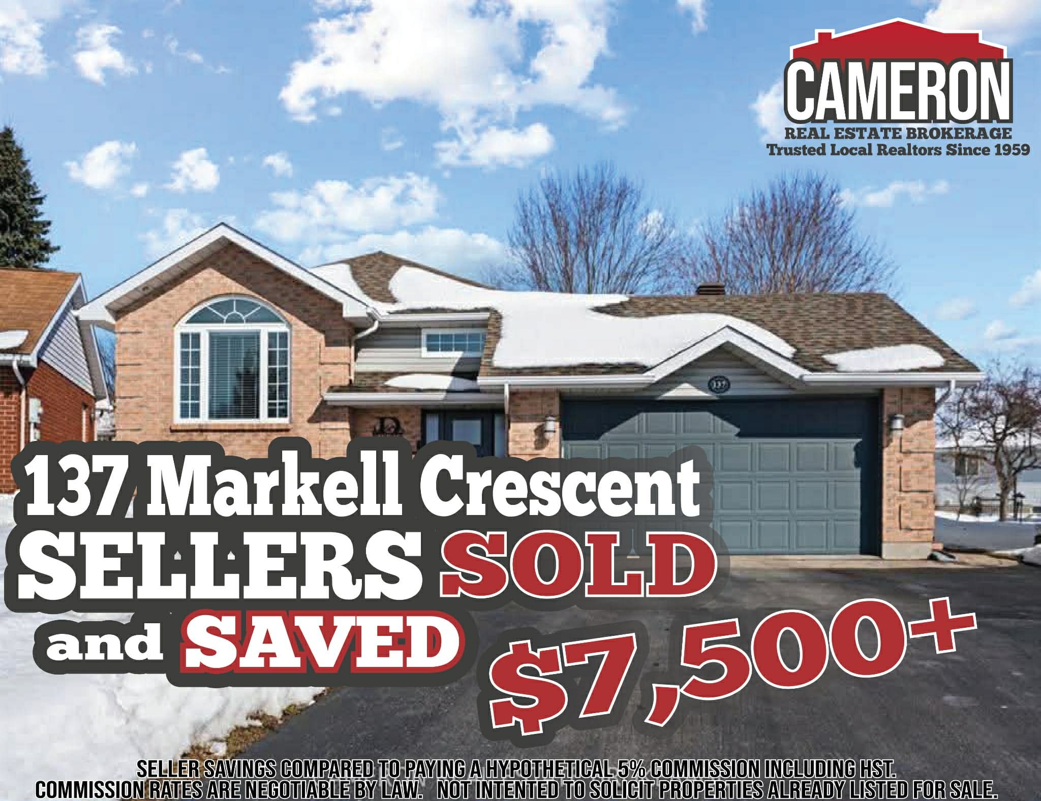 Seller savings compared to hypothetical 5% commission (HST included) versus homeowner paying our reduced commission rates. Commission rates are negotiable by law. Not intended to solicit properties already listed for sale.